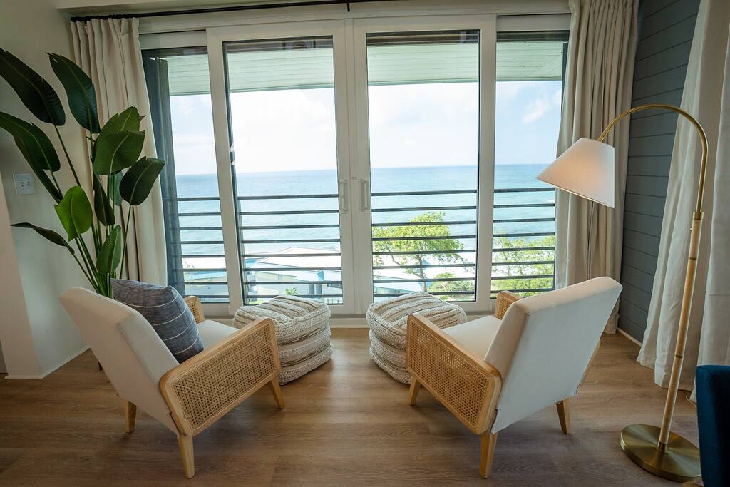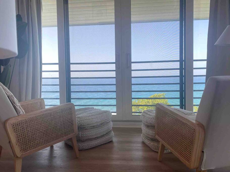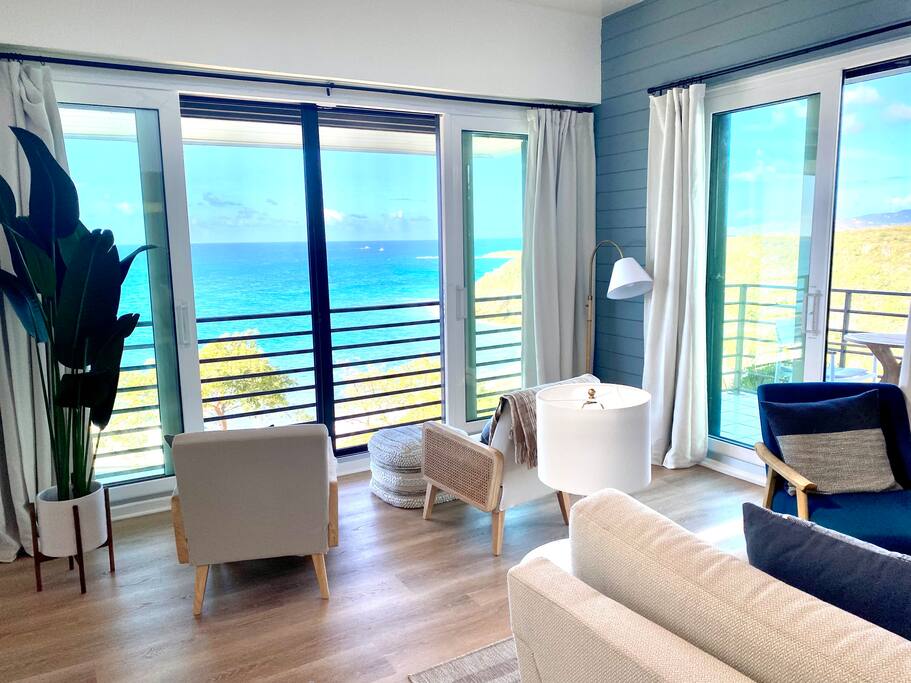 This oceanfront penthouse condo is located on a hill overlooking the Caribbean Sea with views from every room. The unit features 2 spacious bedrooms with 2 Queen Beds in one room and 1 King Bed in the second room. Enjoy secluded outdoor lounge areas on each level and a spacious main level living area. Perfect place to relax after each day's adventures. Please note, the loft space may not be suitable for young children and toddlers.